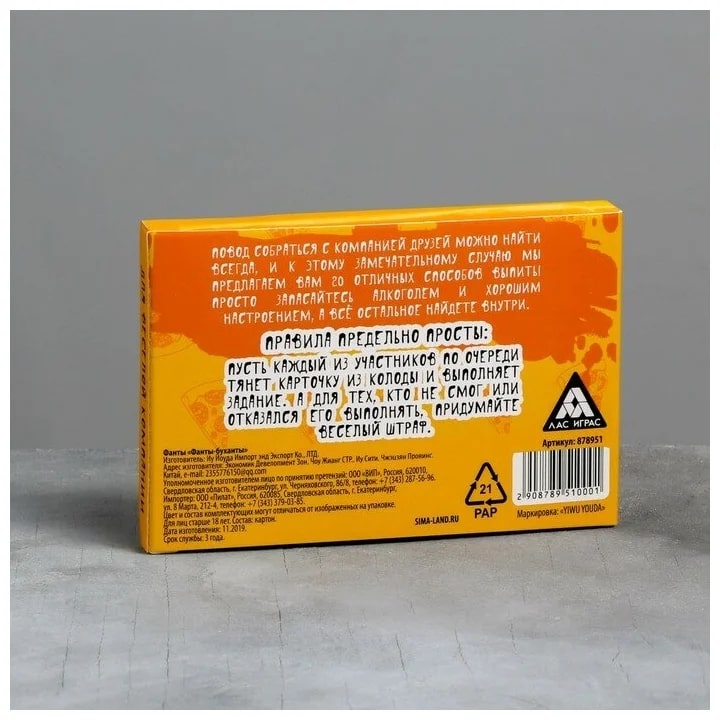 Купить игра для компании "фанты буханты" 20 карт от 100 руб. с доставкой до пункта выдачи в Волгодонске. Интернет магазин ДекаМаркет. Оплата при получении.